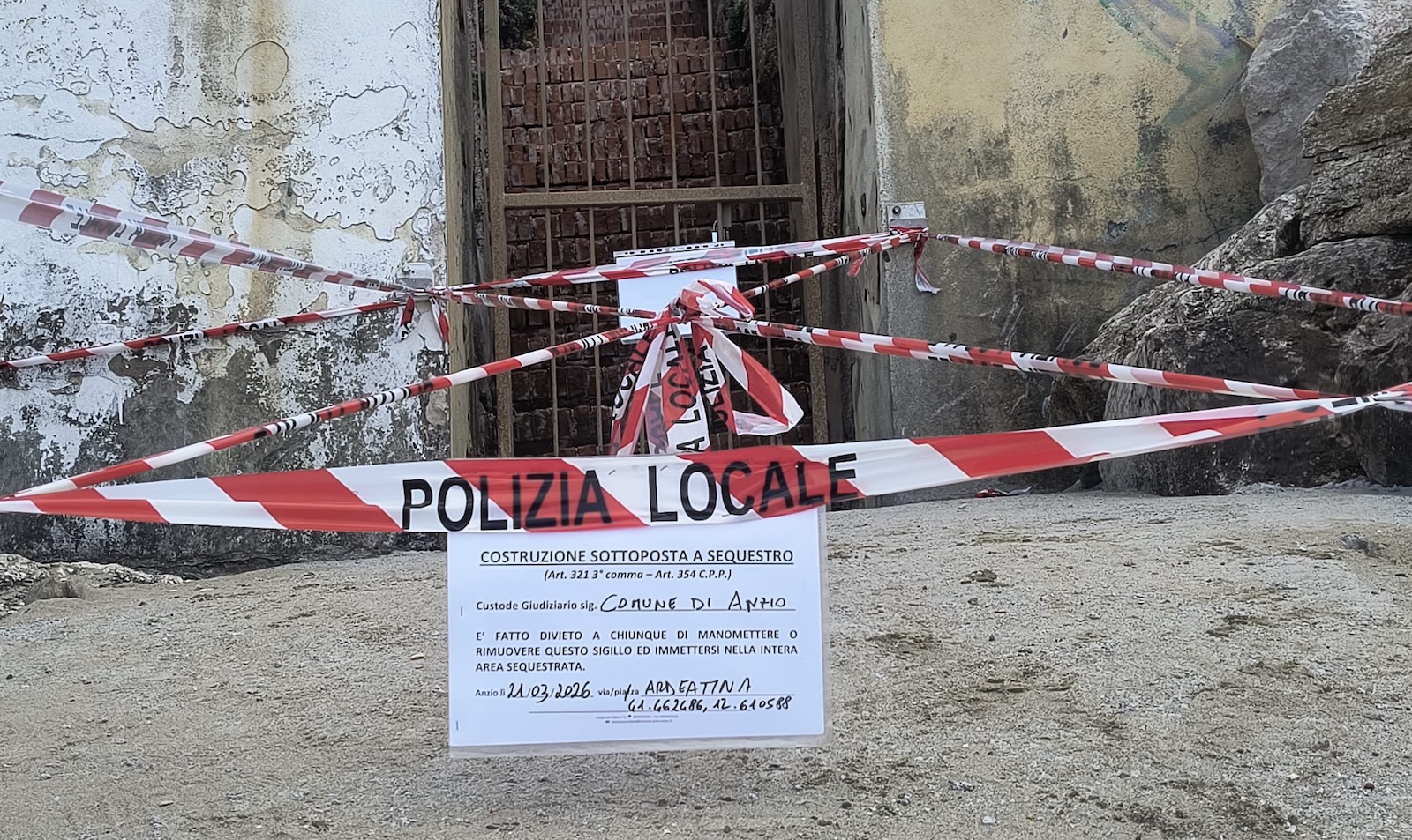 Succede ad Anzio Colonia, all’incrocio tra via Ardeatina e via Amerigo Vespucci, dove durante un controllo sulla fascia costiera gli agenti della Polizia Locale si sono imbattuti in qualcosa che non avrebbe dovuto esserci. Una rampa in cemento, realizzata accanto a una scala già esistente a servizio di un condominio, che scendeva direttamente verso la spiaggia. Nessuna autorizzazione, nessun titolo. Solo un accesso costruito di fatto su misura.