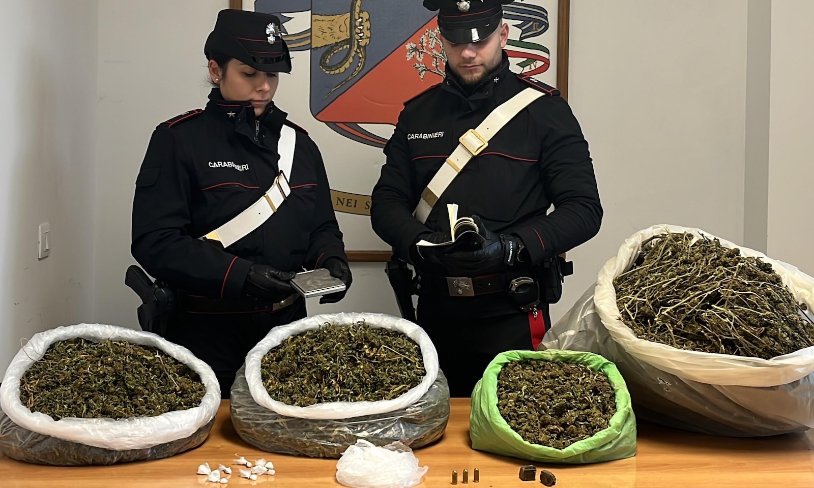 È durante un servizio mirato di contrasto allo spaccio di sostanze stupefacenti che i militari intercettano movimenti giudicati anomali nel comune di Cerveteri. L’attenzione si concentra su un 40enne italiano, colto in flagranza mentre cede una dose di cocaina a un giovane del posto. I militari decidono di procedere a un controllo più approfondito, con una perquisizione domiciliare. In casa saltano fuori 188 grammi di cocaina, 23 grammi di hashish, bilancini di precisione, materiale per il confezionamento delle dosi e persino tre proiettili calibro 9. Tutto viene immediatamente sequestrato.