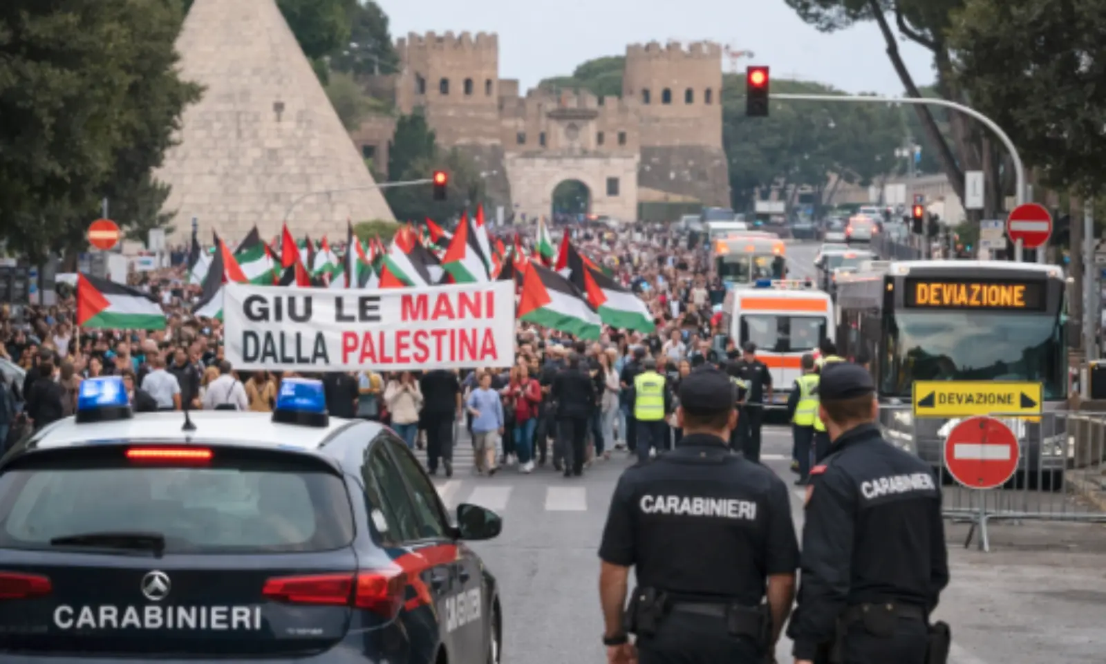 Il corteo partirà da piazza della Bocca della Verità e arriverà a piazza di Porta San Paolo. Il tragitto annunciato passa per via dei Cerchi, via dell’Ara Massima di Ercole, via del Circo Massimo, viale Aventino, piazza Albania e viale della Piramide Cestina. Si tratta di un asse centrale della città, dove al passaggio dei partecipanti potranno scattare chiusure temporanee, rallentamenti e limitazioni alla circolazione. Le modifiche saranno legate all’avanzamento del corteo e alla gestione della sicurezza.