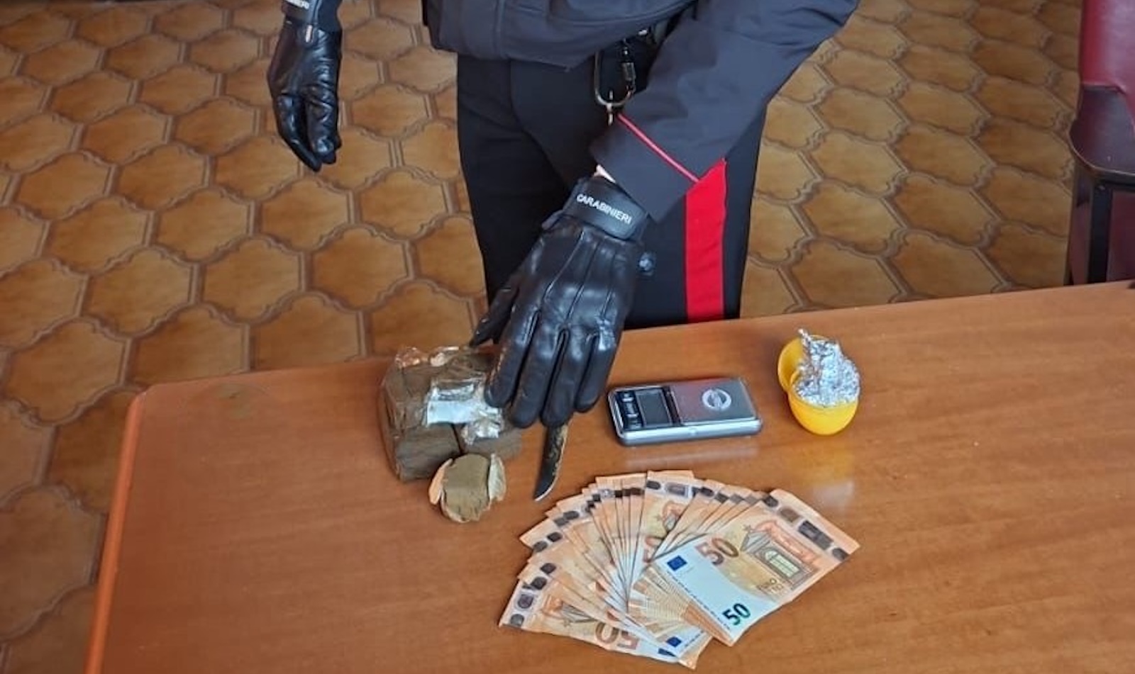 I militari lo hanno fermato poco dopo. Nel corso della perquisizione personale i carabinieri hanno trovato alcune dosi di cocaina e circa 1.000 euro in contanti, ritenuti provento dell’attività di spaccio. Non è finita lì. La successiva perquisizione domiciliare, nell’abitazione dell’uomo a Pomezia, ha portato al ritrovamento di altri 12 grammi di cocaina e ben 332 grammi di hashish, oltre al classico “kit dello spaccio”: bilancino di precisione e materiale per il confezionamento delle dosi. Tutta la sostanza stupefacente è stata sequestrata.
