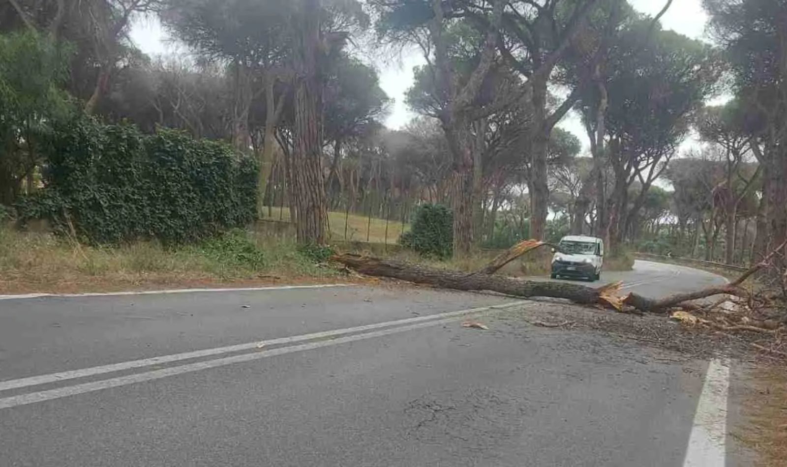 Ostia, cade un grosso ramo in via di Castel Fusano: strada chiusa