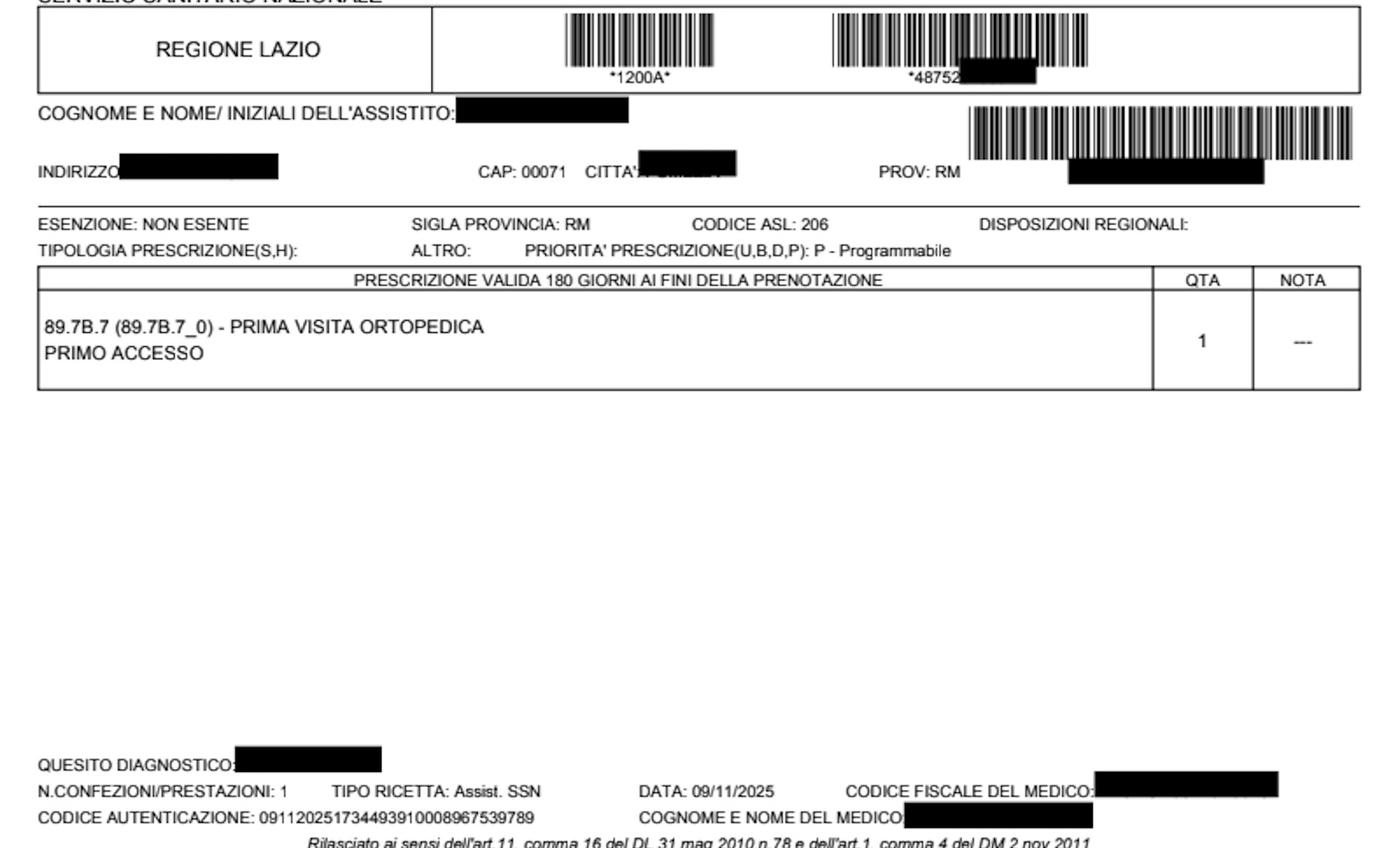 Il provvedimento approvato dalla Giunta Rocca riguarda le impegnative del medico di famiglia per accedere alle prestazioni tramite il CUP regionale, quindi in strutture pubbliche o private accreditate. Nessuna novità, invece, per le ricette dei farmaci. È importante sapere che la validità della prescrizione non sarà più uguale per tutti. A determinarla sarà la classe di urgenza, cioè il livello di priorità clinica attribuito dal medico, soprattutto nelle prime visite.