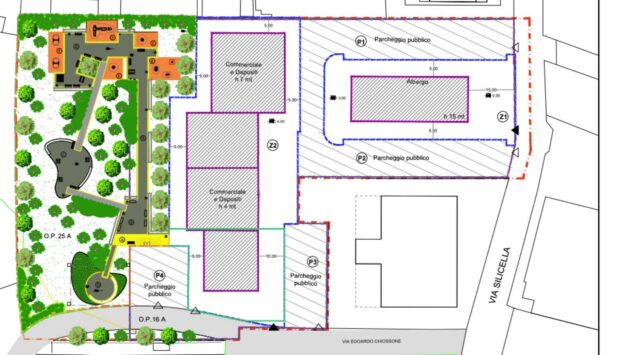 Tradotto in cemento, le carte del progetto appena approvato riportano la realizzazione di: un edificio ricettivo (hotel) da 8.872 metri cubi. Un edificio commerciale, con relativi sotto-depositi, per altri 10.720 metri cubi. Poi anche: parcheggi pubblici, ma anche privati, a servizio del nuovo plesso edile. Una nuova strada di collegamento tra via Silicella e via delle Rondini.