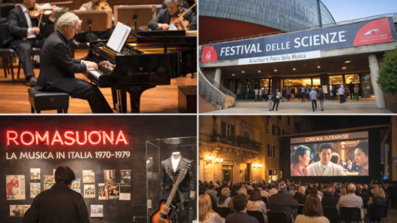 Il 14 aprile è una giornata adatta a chi vuole cominciare con un taglio culturale netto ma senza correre troppo. Alla Sapienza è in programma il concerto di Alexander Lonquich, uno degli appuntamenti musicali più solidi della giornata. Nello stesso giorno, a Palazzo Esposizioni, parte “ROMASUONA. La musica in Italia 1970-1979”, mostra che usa gli anni Settanta per raccontare una stagione decisiva della città. Per chi preferisce i musei, restano aperte anche “Don’t Stop Me Now” a Palazzo Braschi e la mostra su Franco Battiato al MAXXI.