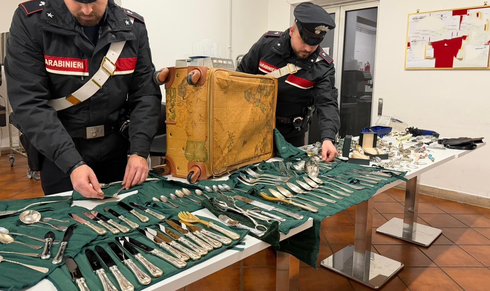 Ed è proprio in casa dell’uomo che i militari fanno la scoperta. All’interno dell’appartamento i carabinieri trovano gioielli in argento, orologi di pregio, borse, pelletteria e accessori di lusso. Tutta merce di dubbia provenienza, accumulata attraverso furti mirati e pronta a essere rivenduta. E a rafforzare questa ipotesi il ritrovamento di materiale tecnico per l’effrazione. Serrature, nottolini, utensili e strumentazione specifica per la fabbricazione e clonazione di chiavi, strumenti tipicamente utilizzati per aggirare i sistemi di sicurezza delle abitazioni.