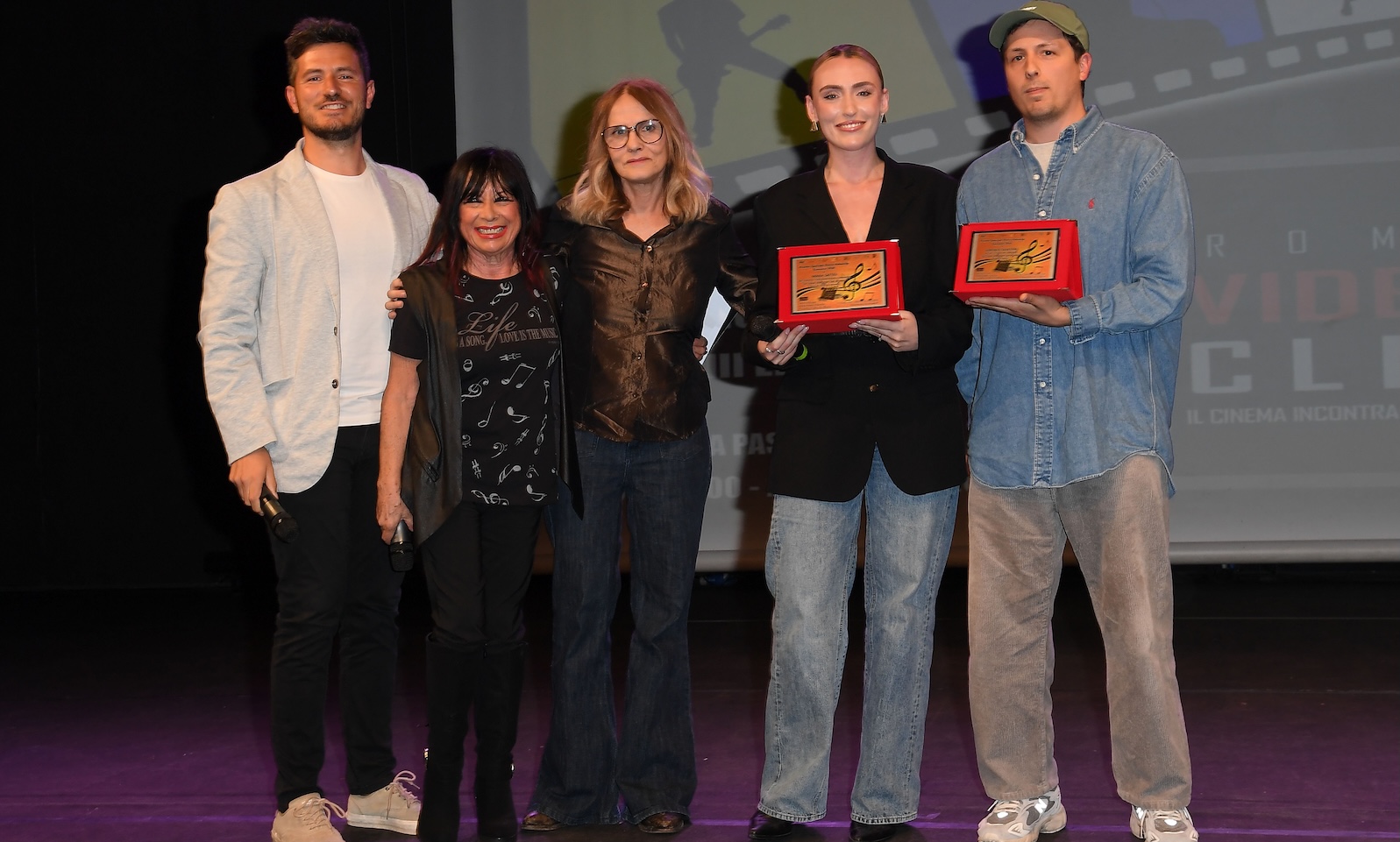 La manifestazione ideata e diretta da Francesca Piggianelli ha riunito artisti, registi, produttori e protagonisti della scena musicale e cinematografica italiana, trasformando la serata in un punto d’incontro tra immagini, musica e storie da raccontare. A guidare l’evento, con ritmo e leggerezza, i conduttori Antonio Panzica e Simone Bartoli, che hanno accompagnato il pubblico tra premi speciali, riconoscimenti e momenti di forte emozione.