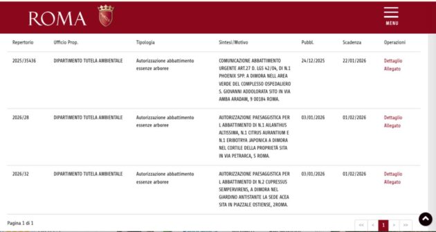 Roma, entro fine gennaio a Villa Torlonia verranno abbattuti gli ultimi 9 alberi giudicati a massimo rischio cedimento, ma sul sito del Comune – ancora una volta – non compaiono le perizie agronomiche. La trasparenza resta “offline”: sul sito internet del comune – Dipartimento Tutela Ambientale – sezione Abbattimento Alberi – le perizie agronomiche che attestano i motivi di tale decisione estrema non compaiono, a differenza di quanto previsto nel regolamento del verde (alleghiamo lo screenshot del sito internet, alla fine di questo articolo). Esattamente come già accaduto fin troppo spesso in passato. È questo il nodo politico che torna identico a ogni taglio: comunicati puntuali, carte decisive difficili da trovare.